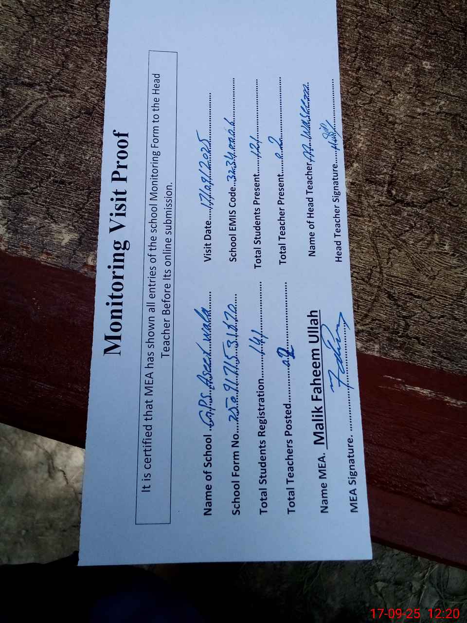 | EMIS Code: 32340066 | Name of School: GPS ASEER WALA | |||