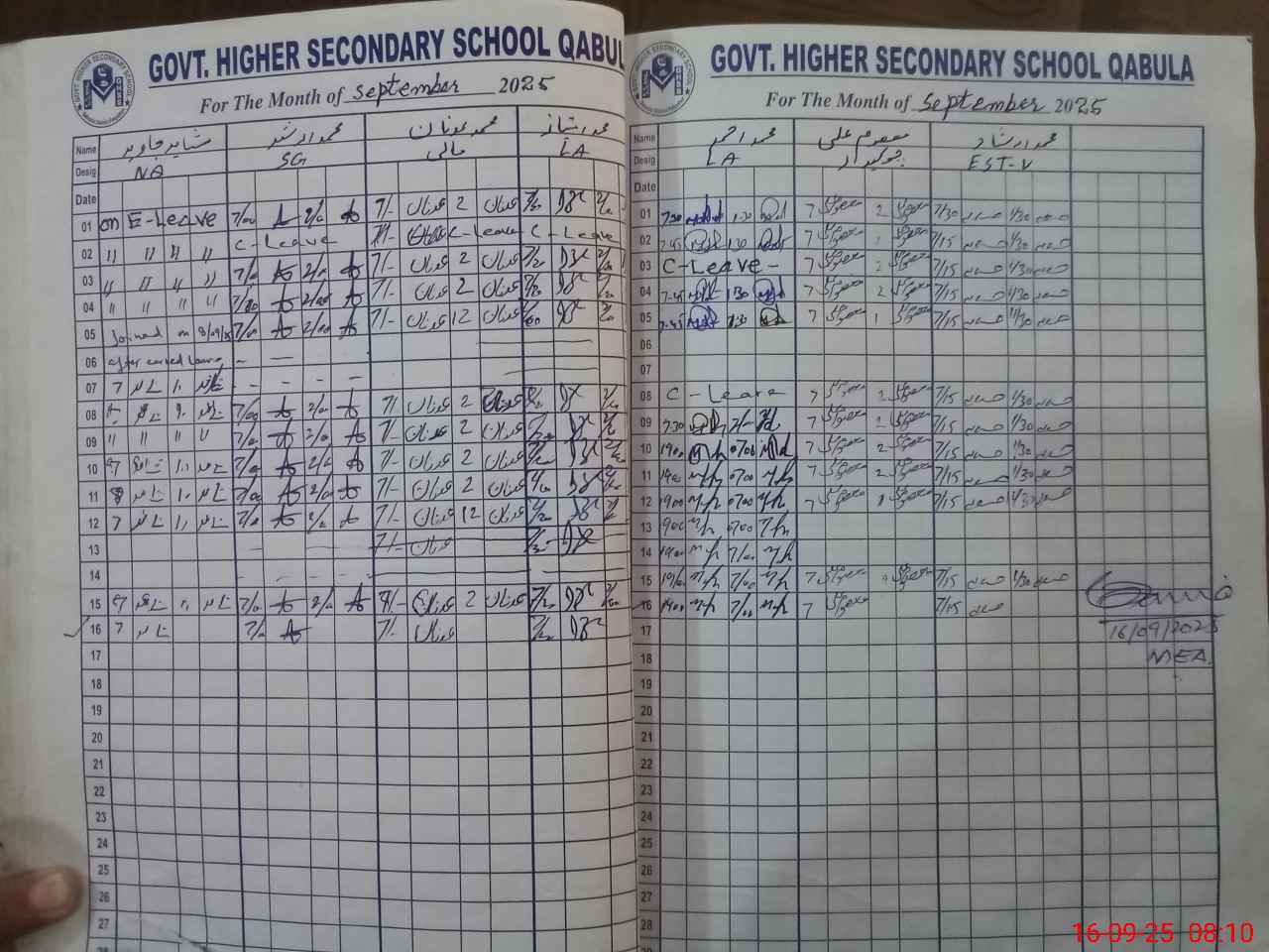 | Attendance Register | Head Teacher | MEA with School | Visit Proof |