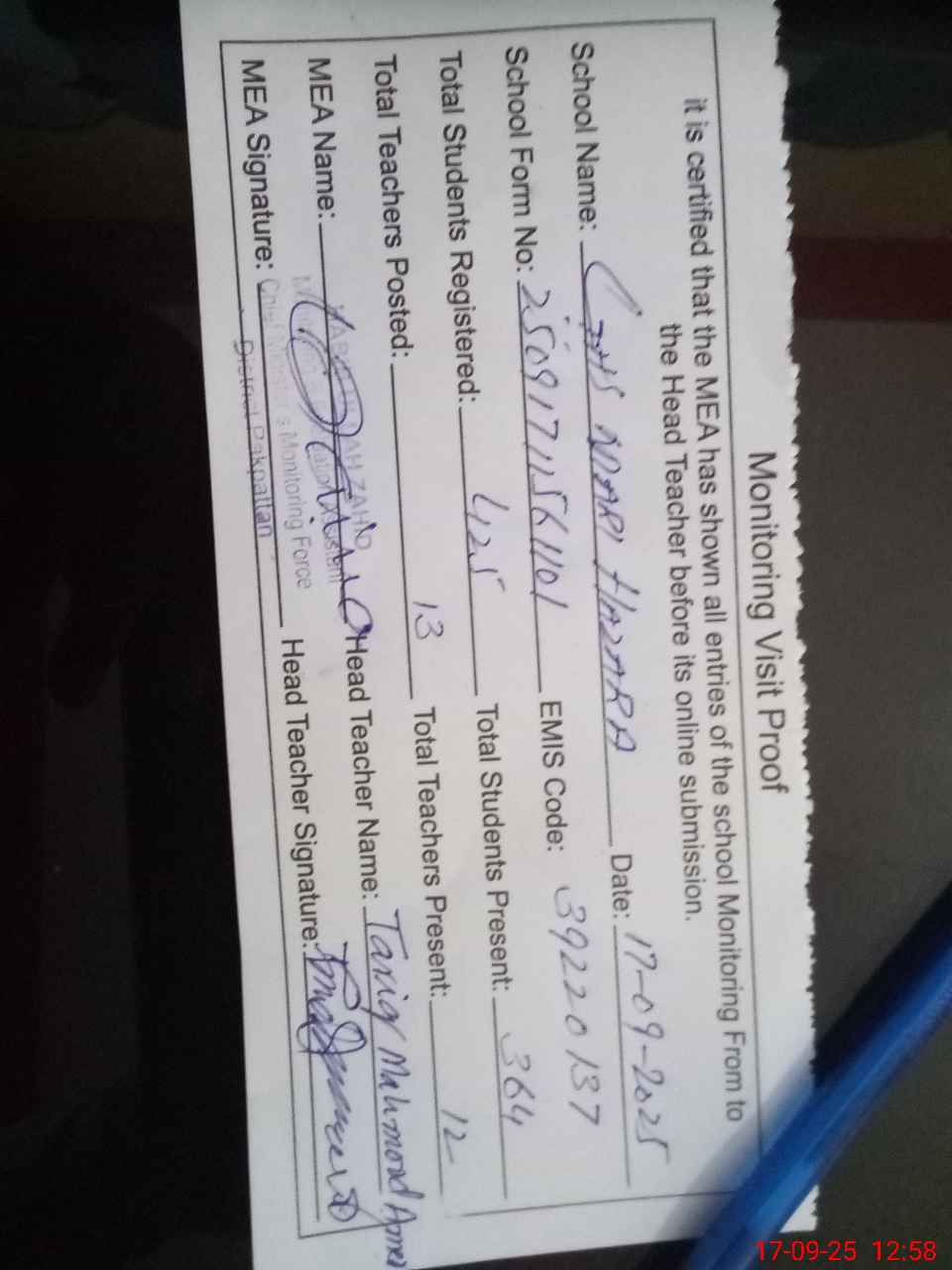 | EMIS Code: 39220137 | Name of School: GHS MARI HAZARA | |||