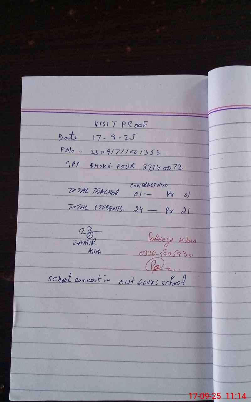 | EMIS Code: 37340072 | Name of School: GPS DHOKE POUR | |||