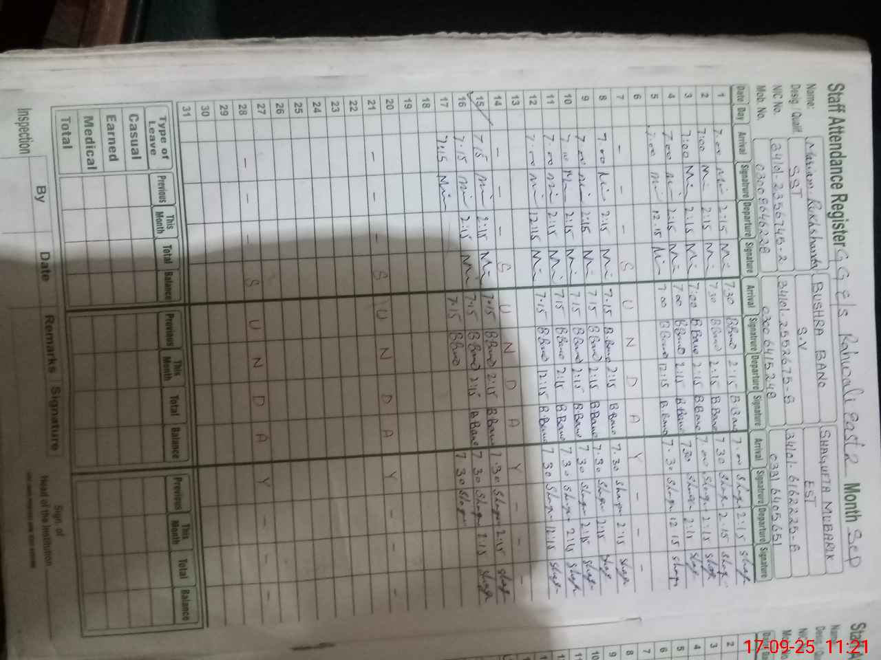 | 34**** | Ta**** Al**** | 3 | 1 | 0 | 0 | 0 | 0 | 0 | 0 | 0 | 0 | 0 | Absent (Un-Authorized) |