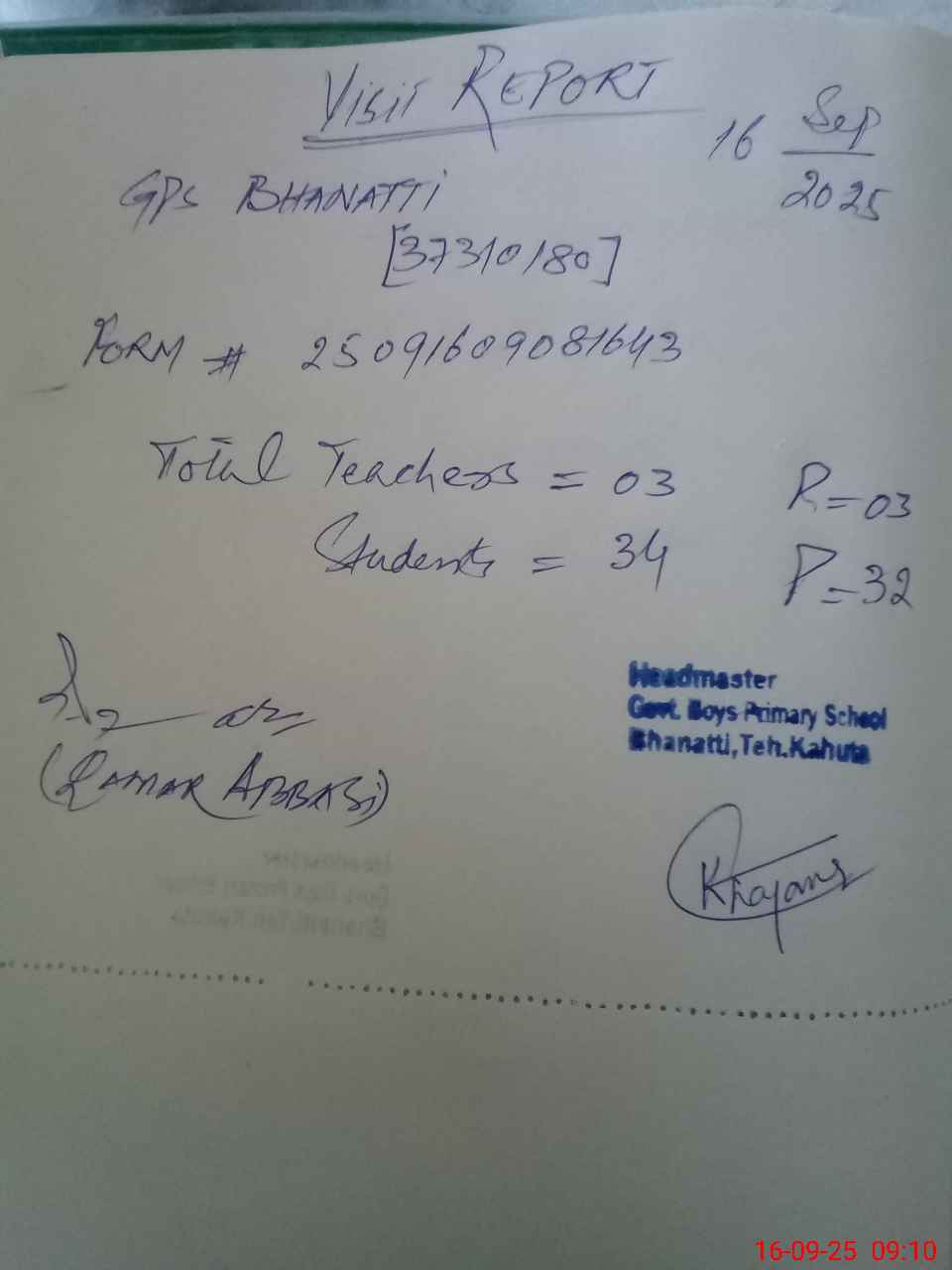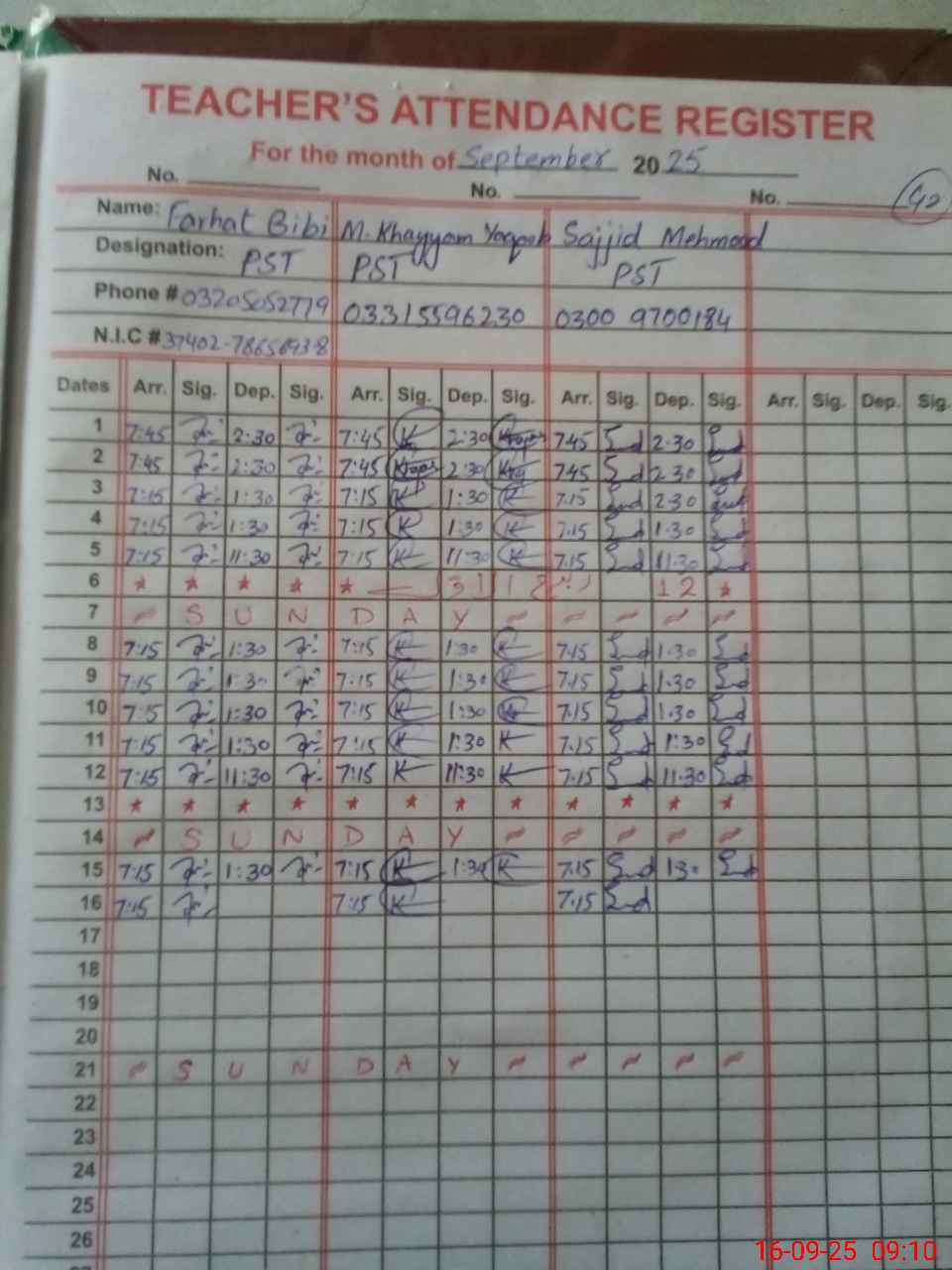 | Name: Mu**** Kh**** Designation: (School Headmaster's/Headmistress's) PST Phone/Cell Number: 03**** |