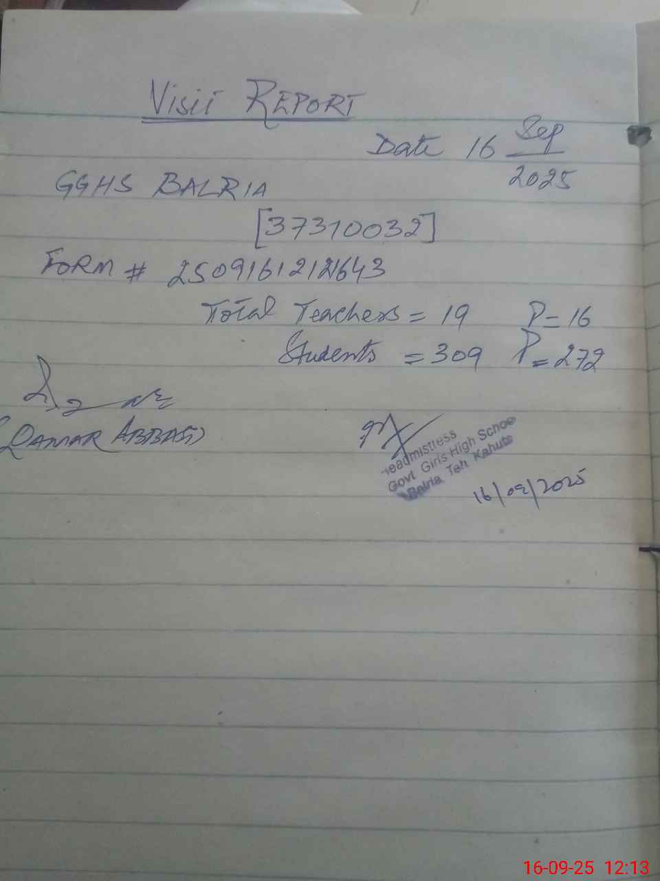 | EMIS Code: 37310032 | Name of School: GGHS BALRIA | |||