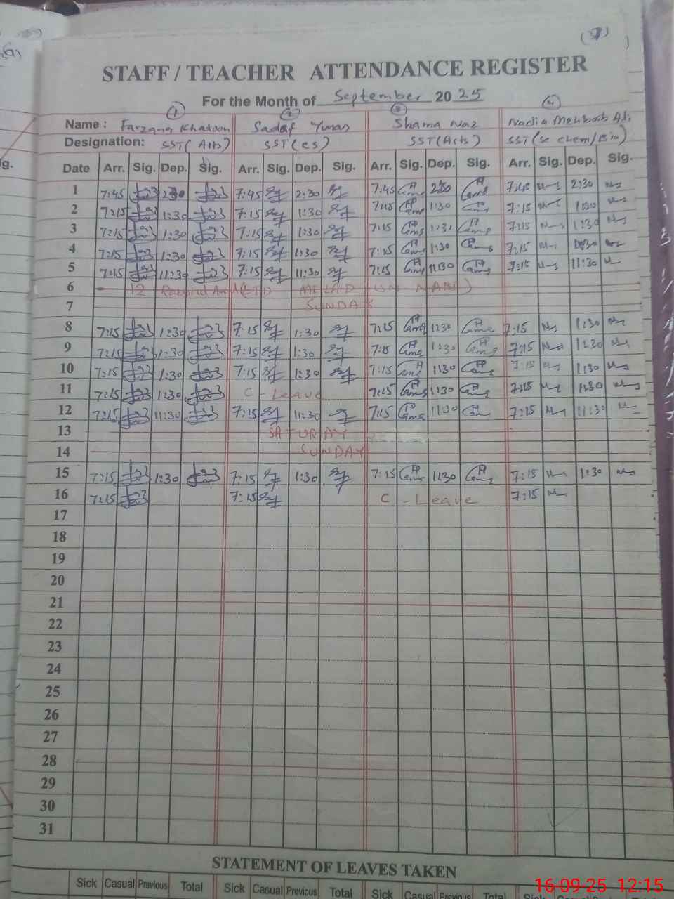 | 37**** | Sh**** Na**** | SST | Regular | 0 | 0 | 0 | 0 | 0 | 0 | 0 | 0 | 0 | Casual |