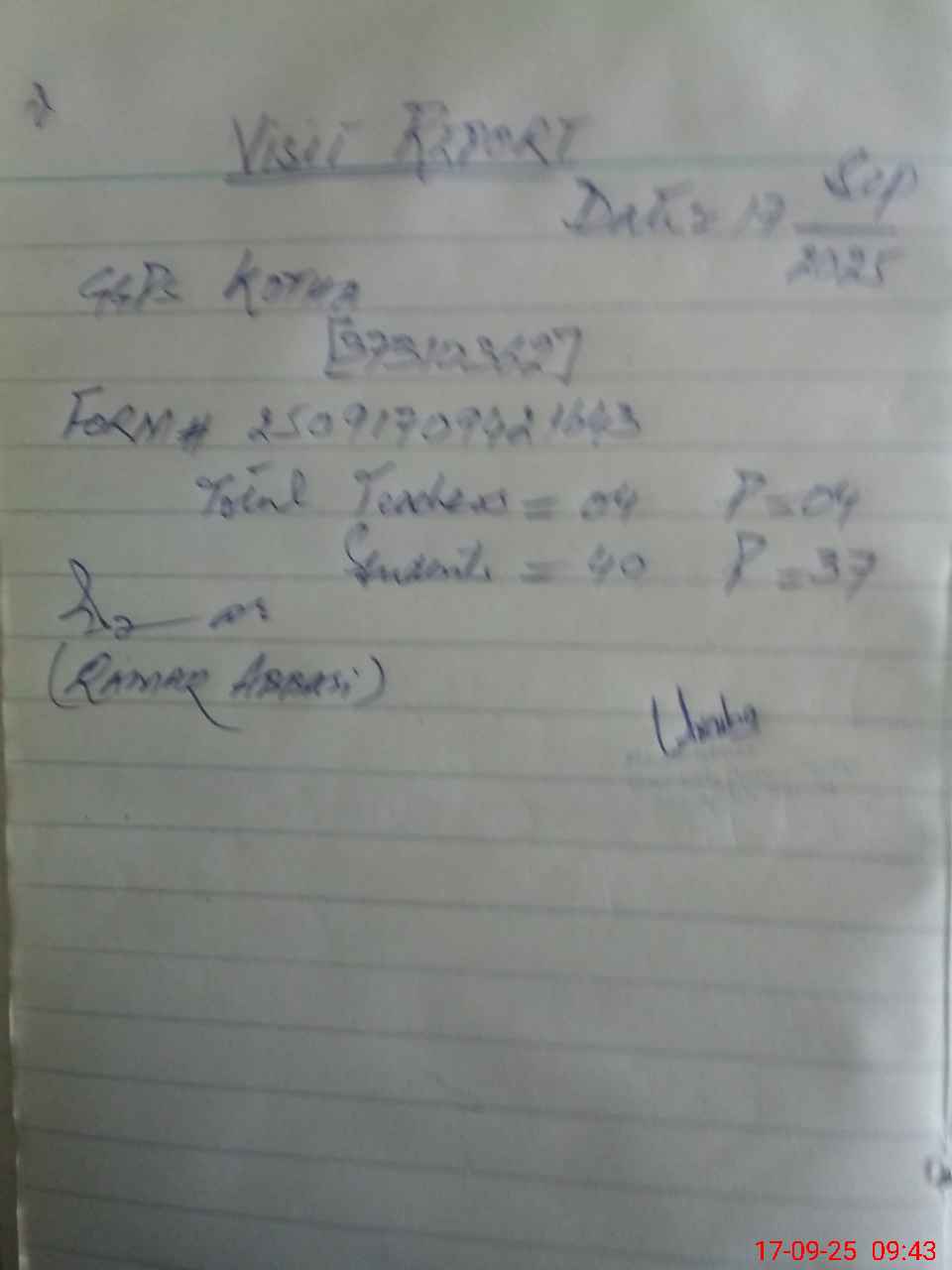 | Name: Ar**** Za**** Designation: (School Headmaster's/Headmistress's) ESE SCI MATH Phone/Cell Number: 03**** |