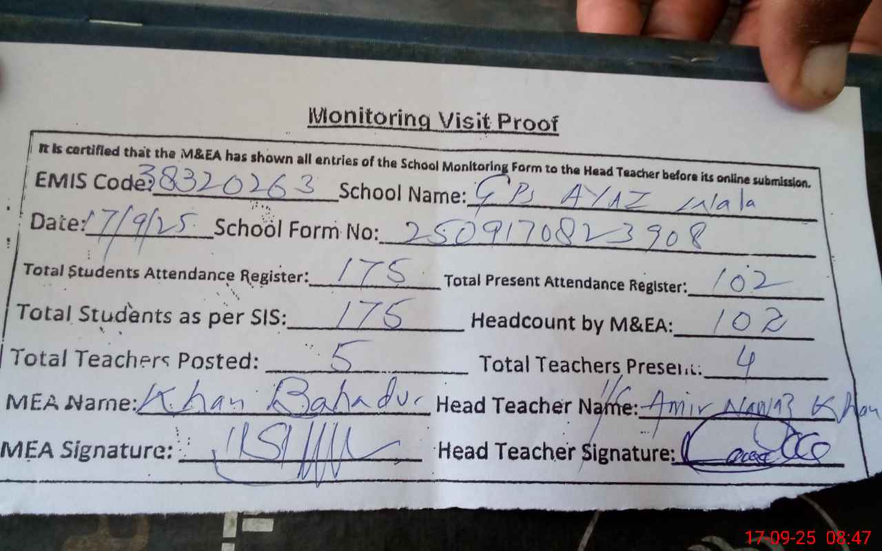 | EMIS Code: 38320263 | Name of School: GPS AYAZ WALA | |||