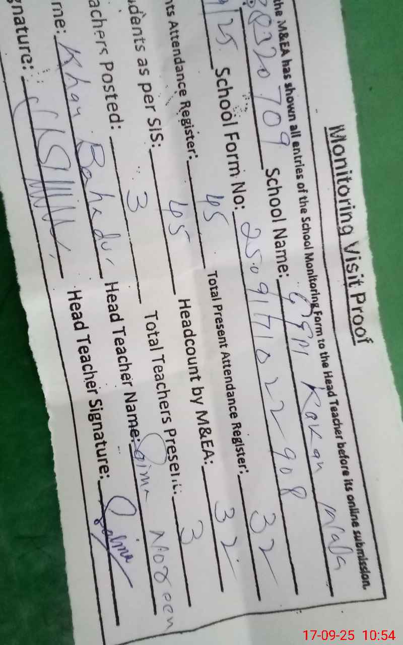 | Attendance Register | Head Teacher | MEA with School | Visit Proof |