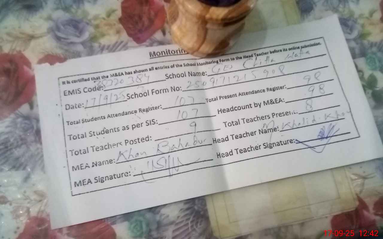 | Attendance Register | Head Teacher | MEA with School | Visit Proof |