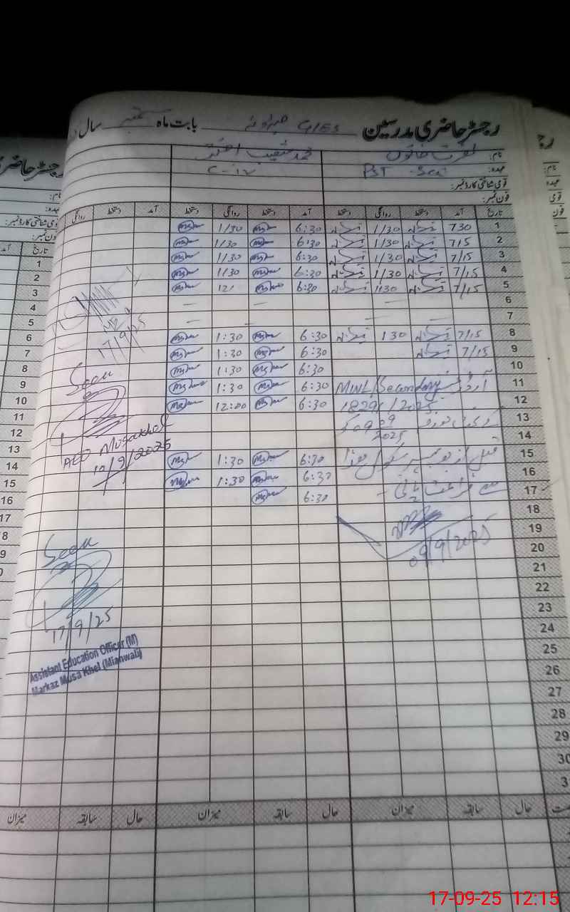 | District: MIANWALI | Tehsil: MIANWALI | Markaz: MUSA KHEL-MALE | Level: Middle | |
