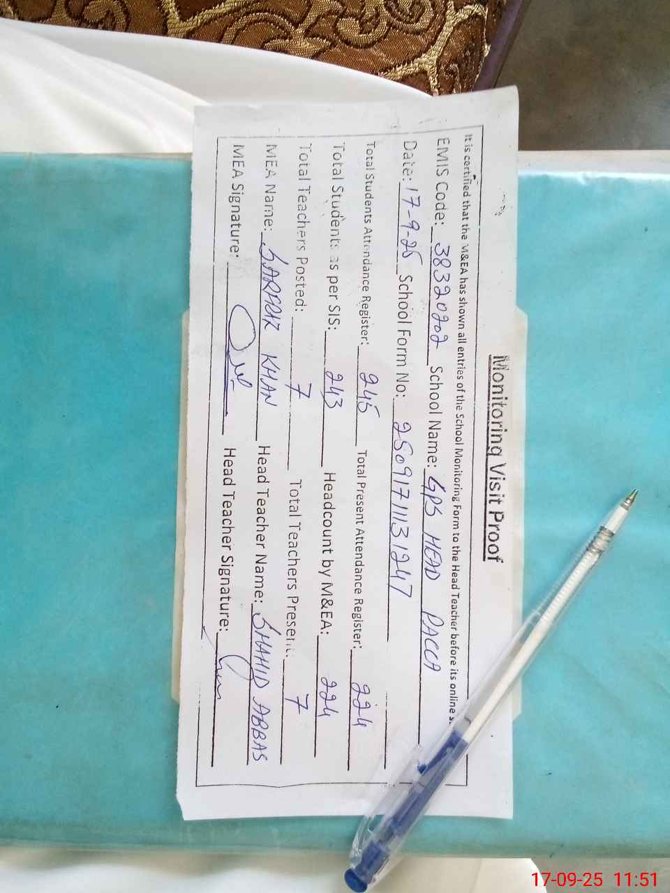 | EMIS Code: 38320202 | Name of School: GPS HEAD PACCA | |||