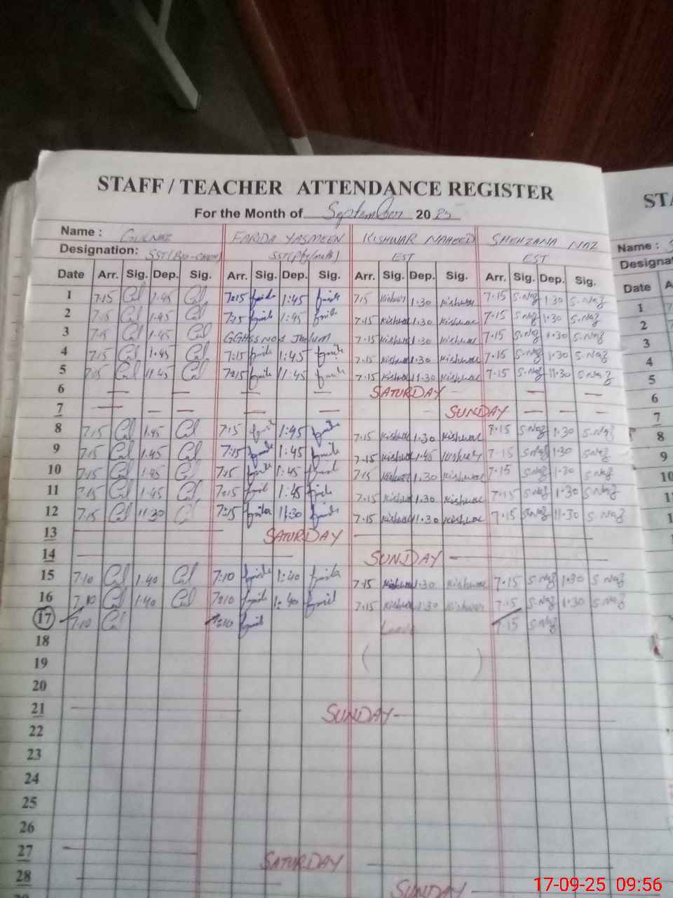 | Monitoring Date: 17-09-2025 | Start Time: 17-09-2025 09:19 AM | End Time: 17-09-2025 10:01 AM | Name of MEA: Za**** Ab**** | |