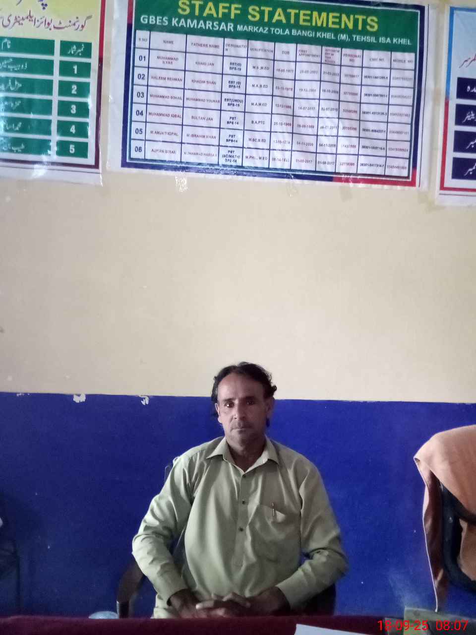 | Name: HA**** RE**** Designation: (School Headmaster's/Headmistress's) EST Phone/Cell Number: 03**** |