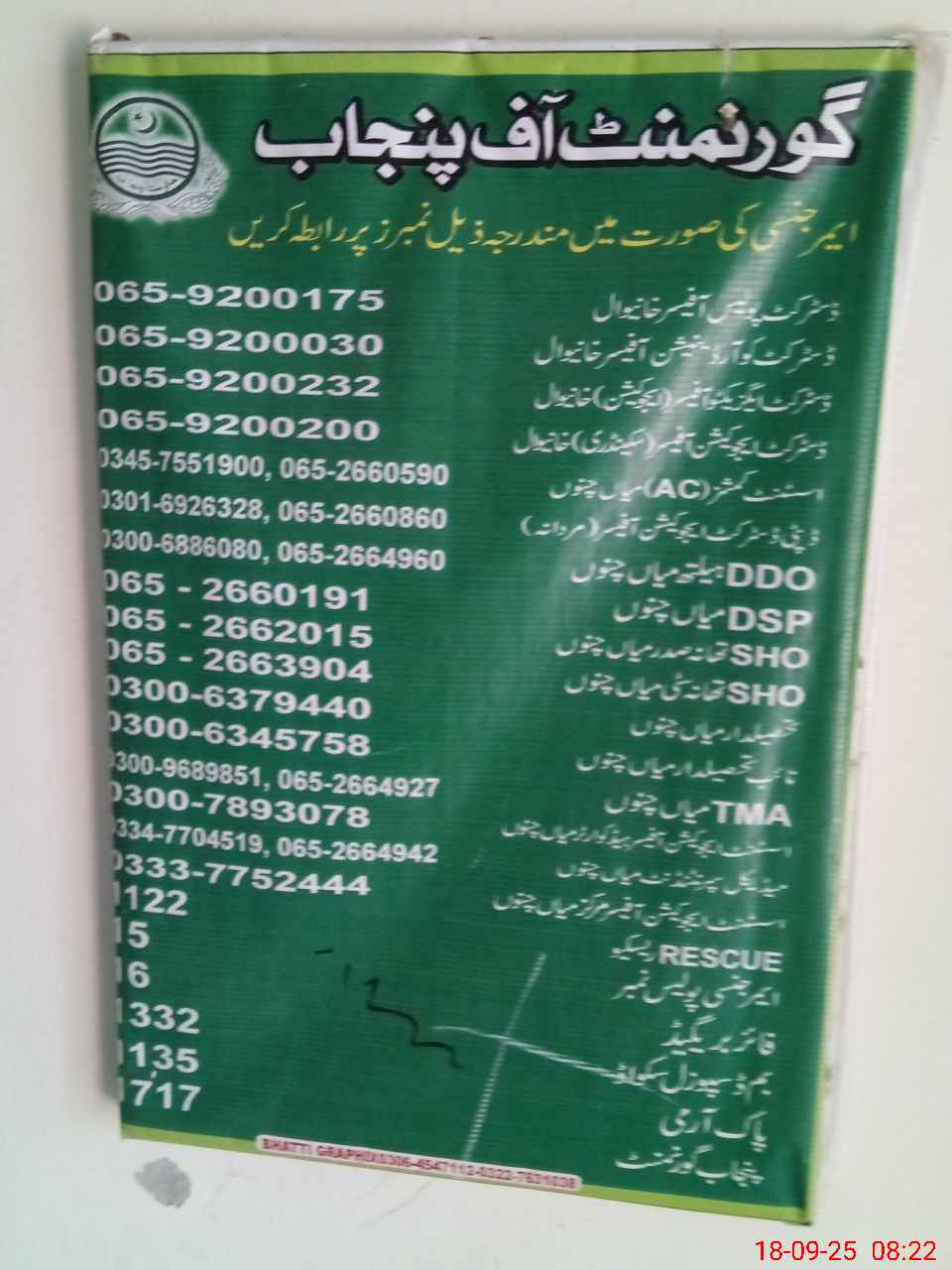 | District: KHANEWAL | Tehsil: MIAN CHANNU | Markaz: SECONDARY-WING | Level: High | |