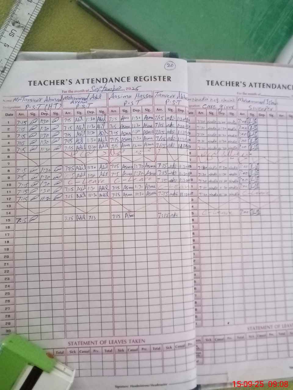 | Attendance Register | Head Teacher | MEA with School | Visit Proof |