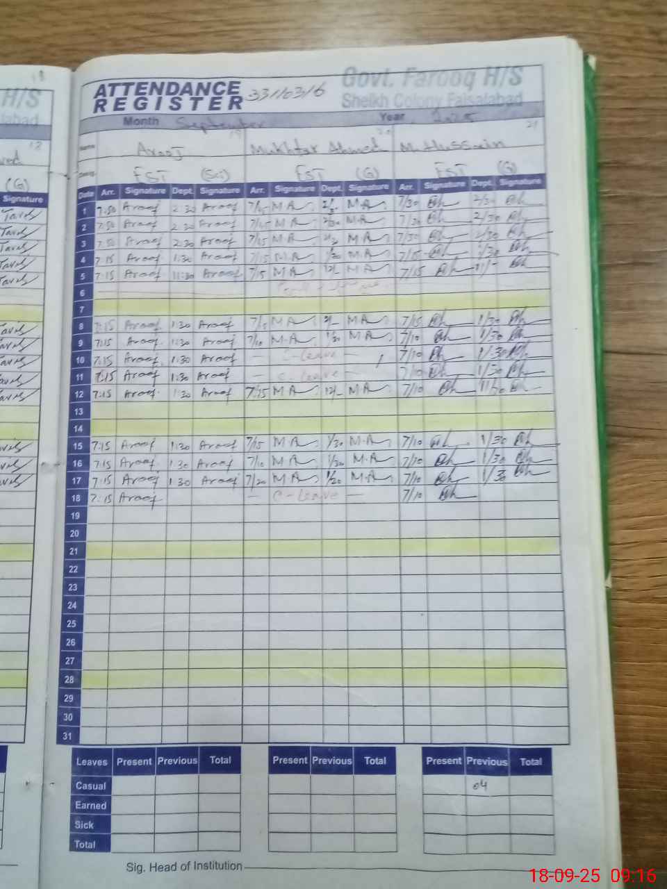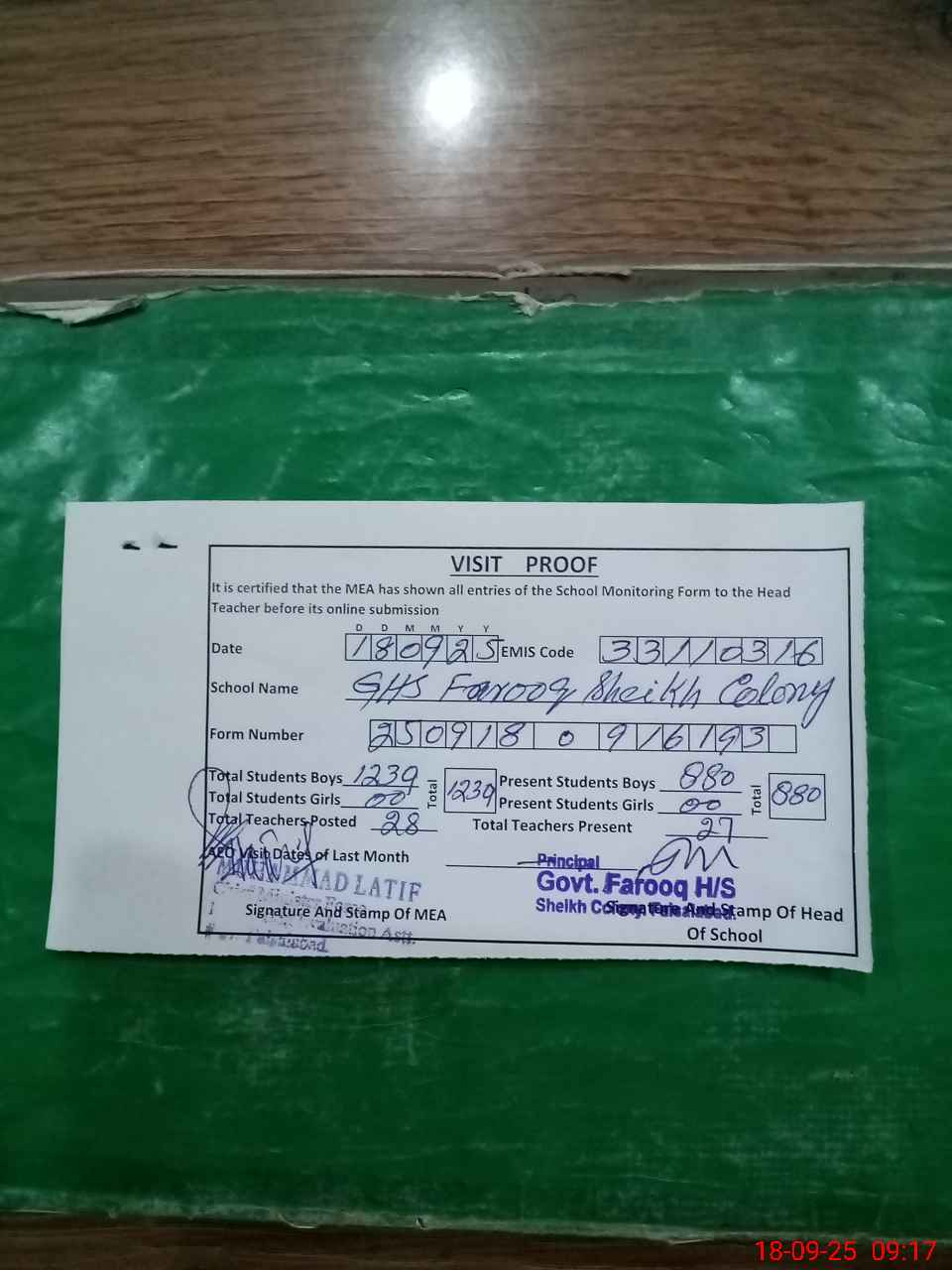 | EMIS Code: 33110316 | Name of School: GHS FAROOQ SHEIKH COLONY FSD | |||