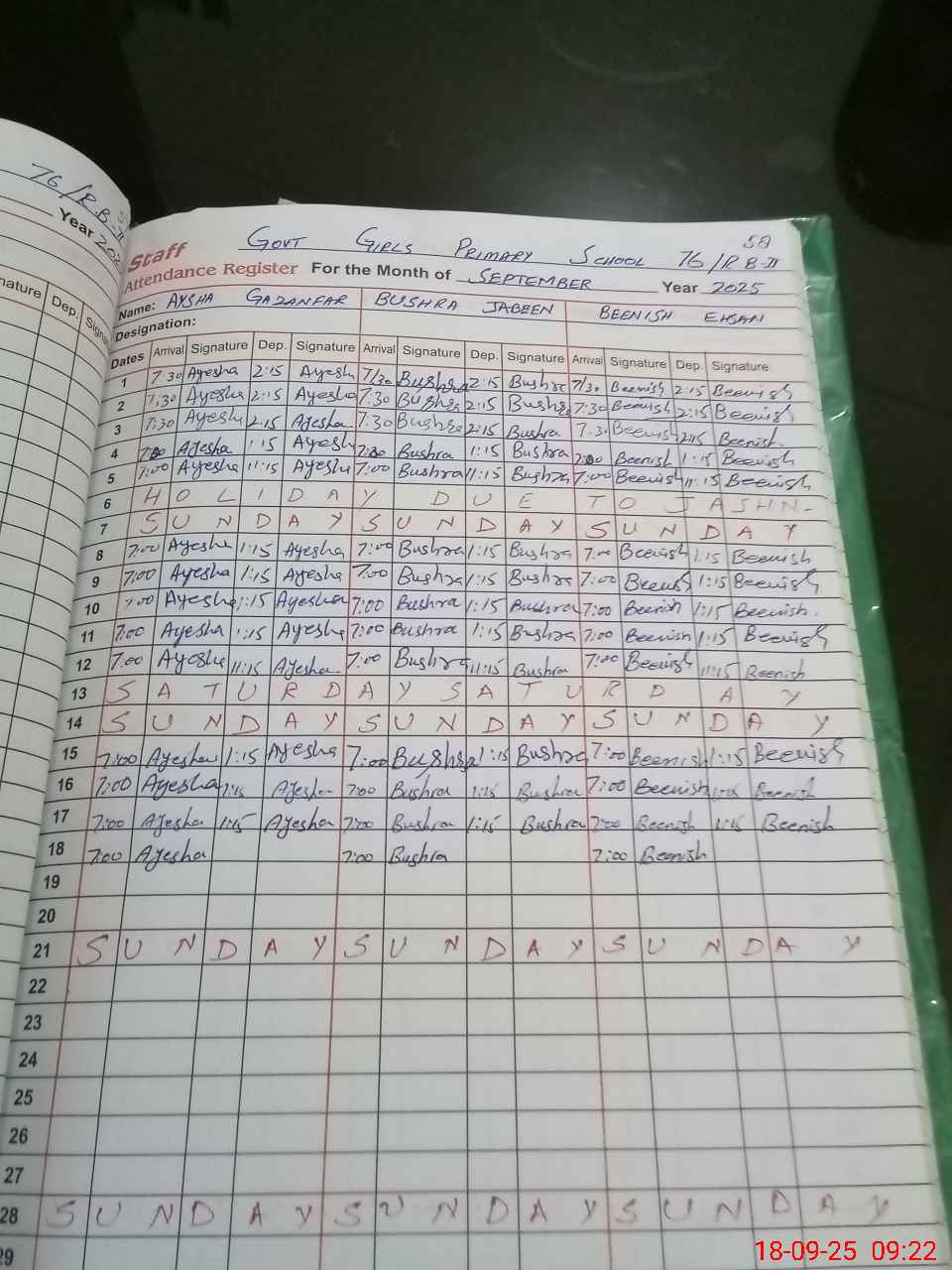 | 33**** | Mu**** Az**** | CKOWKIDAR | 0 | 0 | 0 | 0 | 0 | 0 | 0 | 0 | 0 | Absent (Un-Authorized) | |