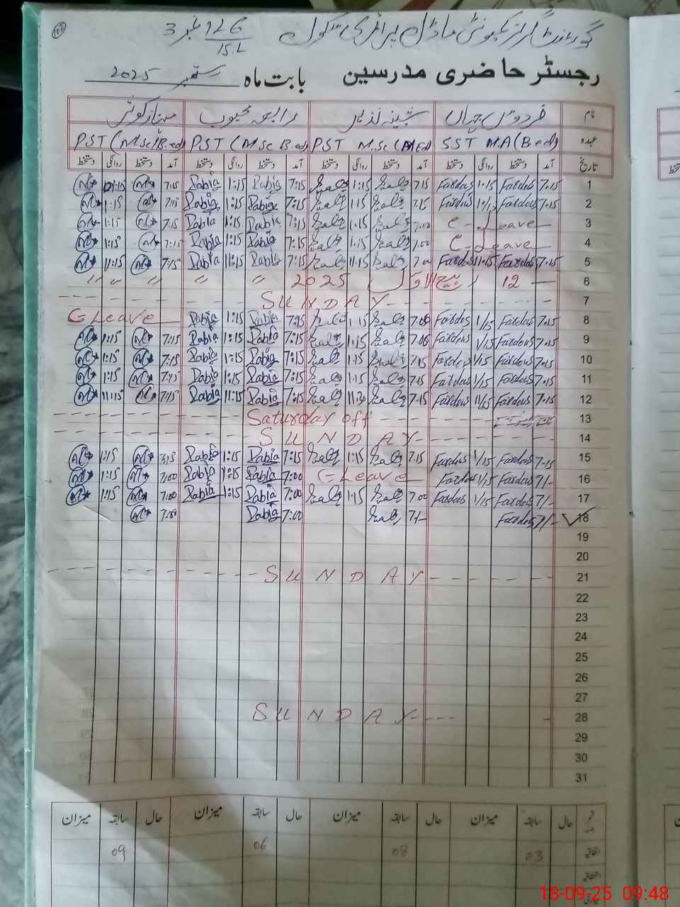 | Leave | Duty | Absent | Maternity | Medical | Ex- Pak |