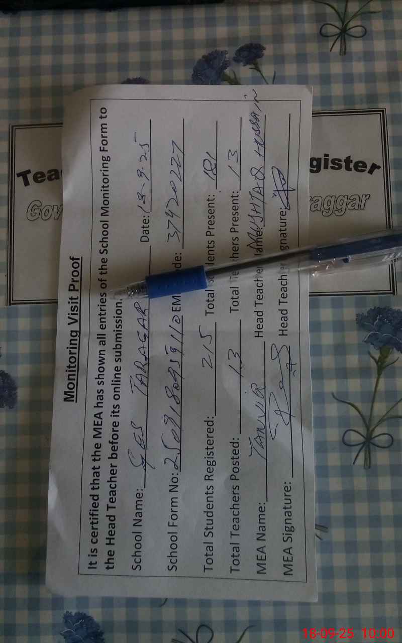 | Attendance Register | Head Teacher | MEA with School | Visit Proof |