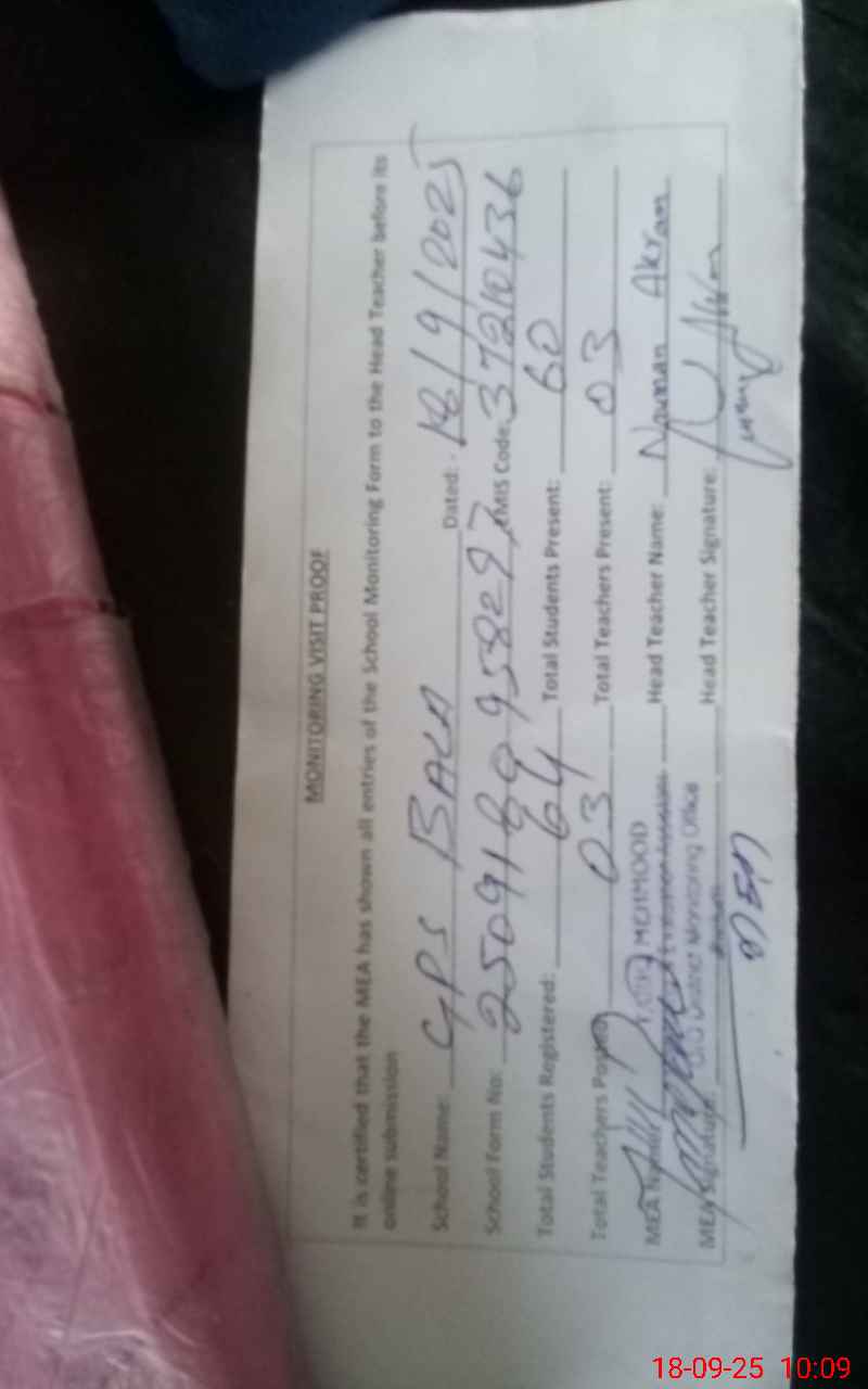| Certified that this School was Inspected by the Undersigned MEA/DMO Today and the Information Stated Above is as Per Record. | |||||
