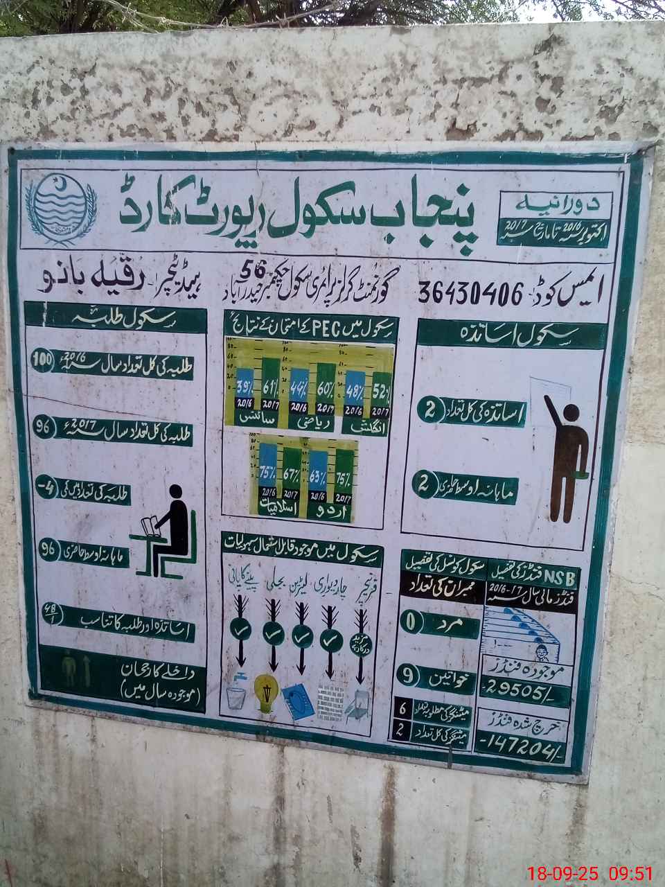 | EMIS Code: 36430406 | Name of School: GGPS CHAK 56 HAIDER ABAD, TULAMBA | |||