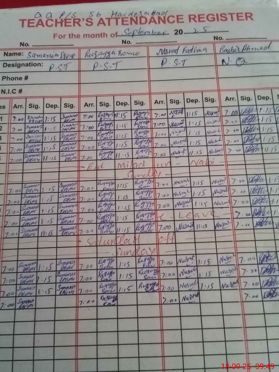 | Name: Sa**** Iq**** Designation: (School Headmaster's/Headmistress's) PST Phone/Cell Number: 03**** |