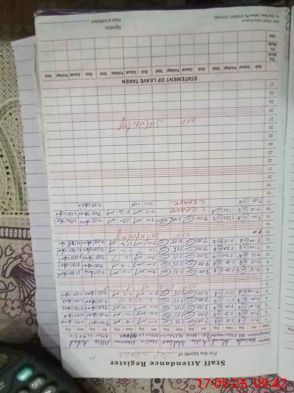 | Remarks (Use Separate Page if Required): M Arshad Mehmood NQ on official duty education office for mail | |||||