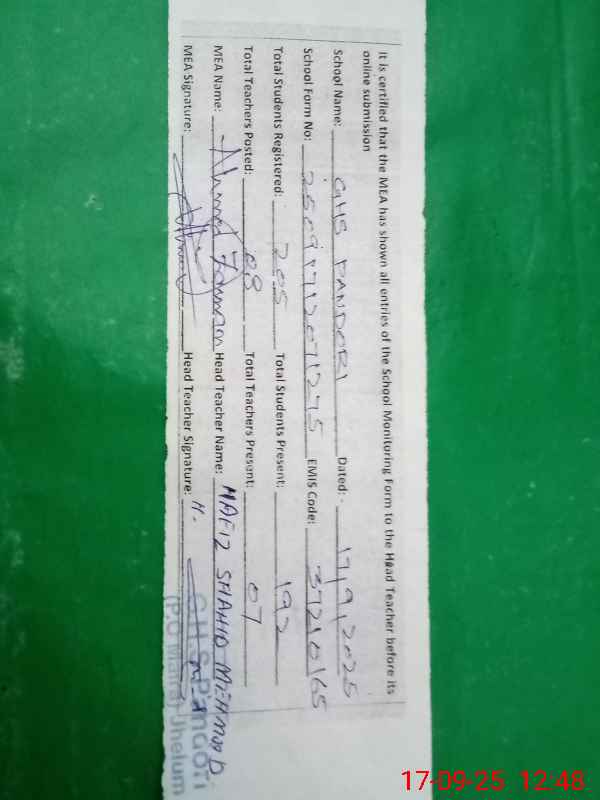 | EMIS Code: 37210165 | Name of School: GHS PANDORI | |||