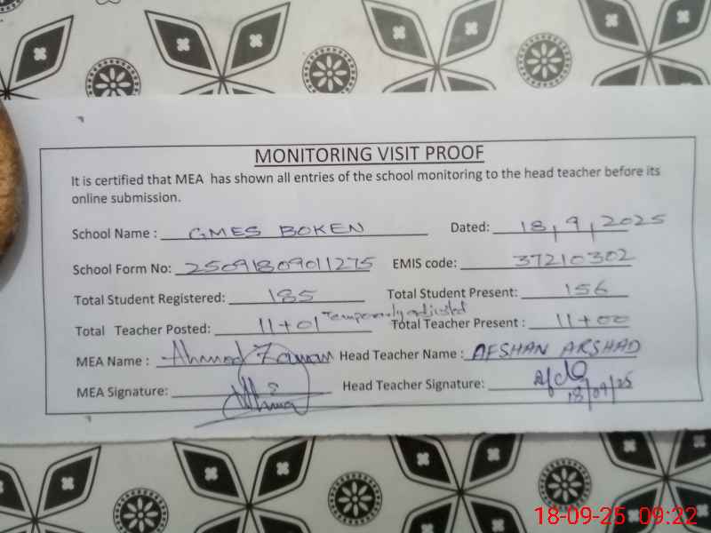 | Certified that this School was Inspected by the Undersigned MEA/DMO Today and the Information Stated Above is as Per Record. | |||||