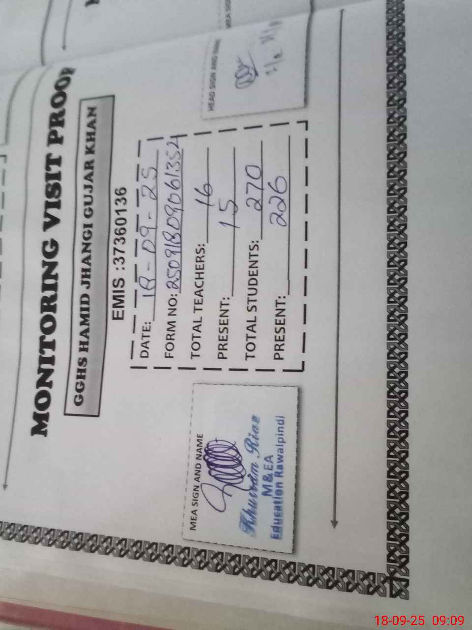 | EMIS Code: 37360136 | Name of School: GGHS HAMID JHANGI | |||