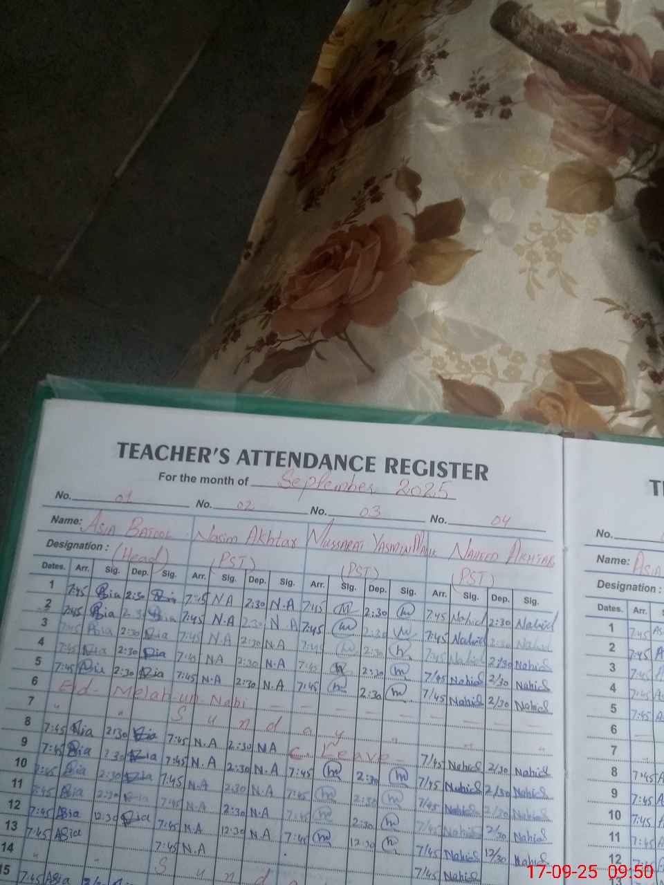 | Name: AS**** BA**** Designation: (School Headmaster's/Headmistress's) PST Phone/Cell Number: 03**** |