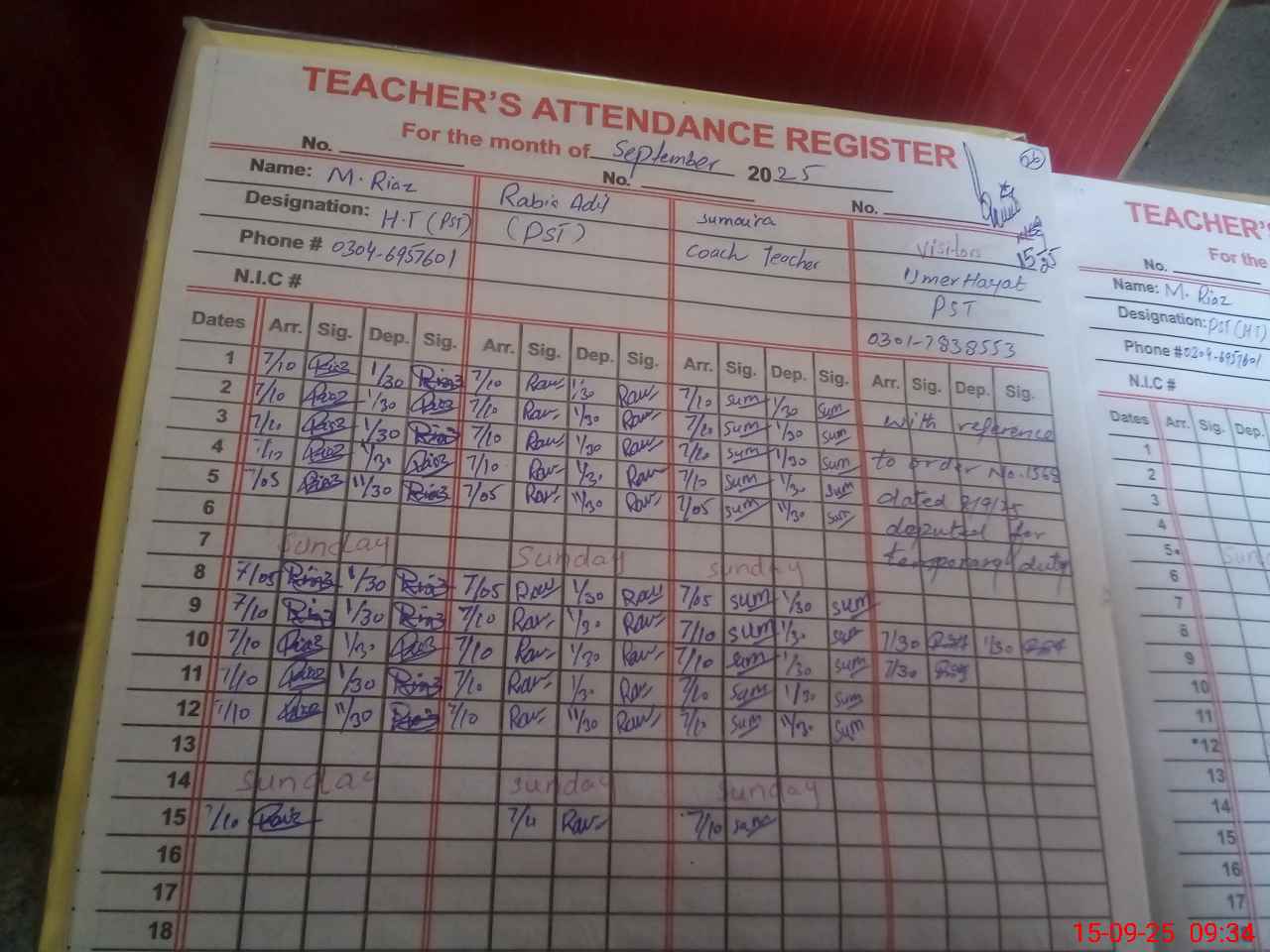 | Name: MU**** RI**** Designation: (School Headmaster's/Headmistress's) PST Phone/Cell Number: 03**** |