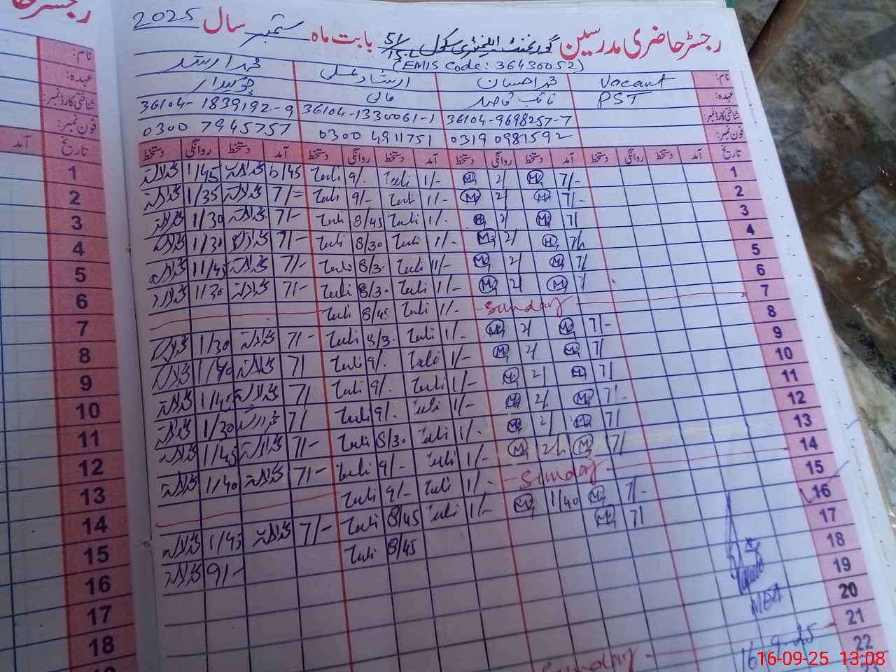 | EMIS Code: 36430052 | Name of School: GES 51/15-L, MIAN CHANNU | |||