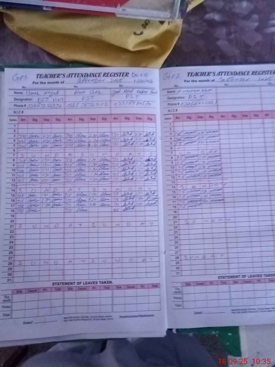 | Name: Um**** Ha**** Designation: (School Headmaster's/Headmistress's) PST Phone/Cell Number: 03**** |