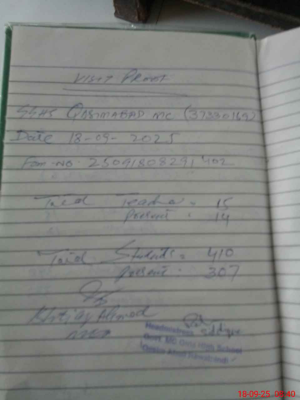 | Monitoring Date: 18-09-2025 | Start Time: 18-09-2025 08:06 AM | End Time: 18-09-2025 08:53 AM | Name of MEA: Is**** Ah**** | |
