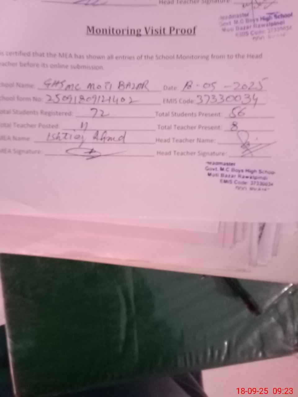 | EMIS Code: 37330034 | Name of School: GHS MC MOTI BAZAR RAWALPINDI | |||