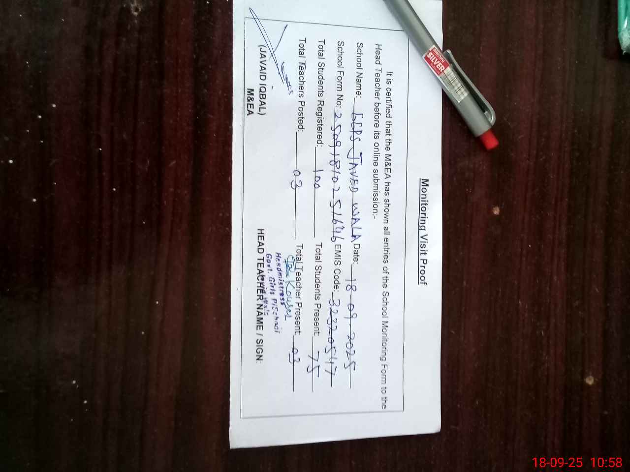| Monitoring Date: 18-09-2025 | Start Time: 18-09-2025 10:25 AM | End Time: 18-09-2025 10:58 AM | Name of MEA: JA**** IQ**** | |
