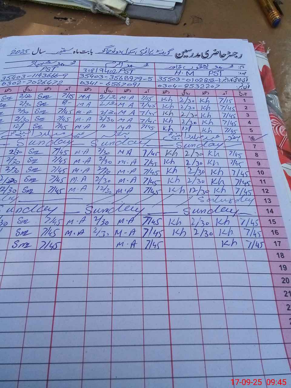| Name: MU**** AH**** NA**** Designation: (School Headmaster's/Headmistress's) PST Phone/Cell Number: 30**** |