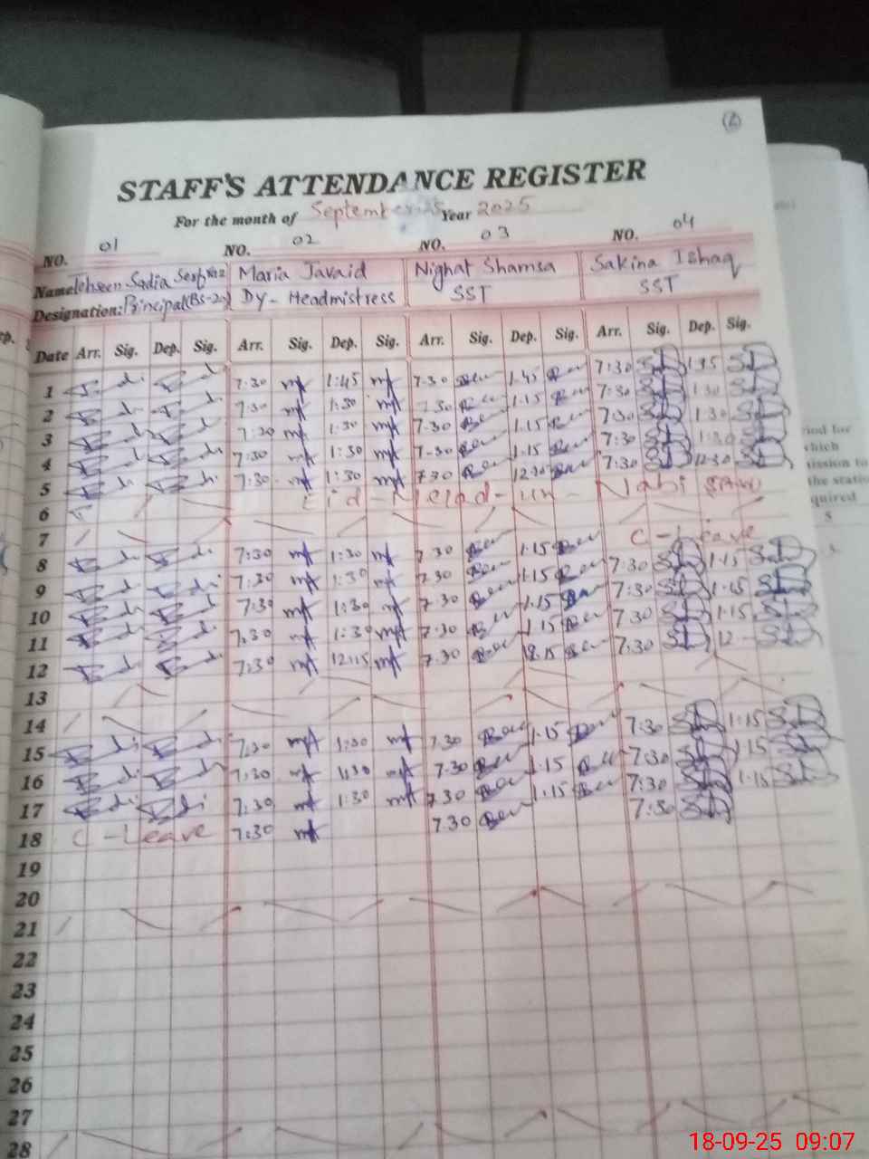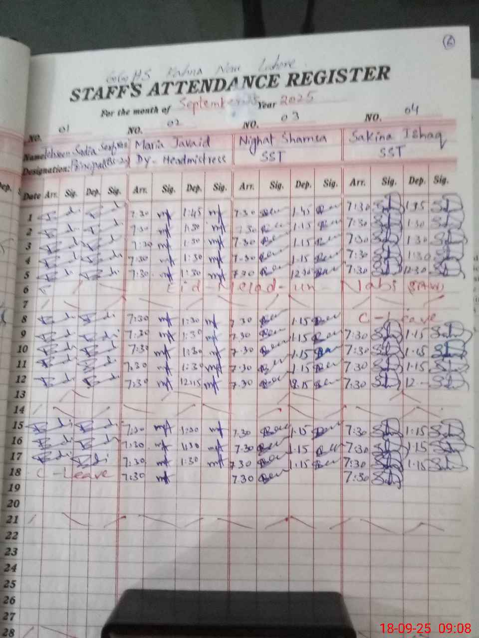 | CNIC | Full Name | Designation | R/C | Absence During Last Calender Month |