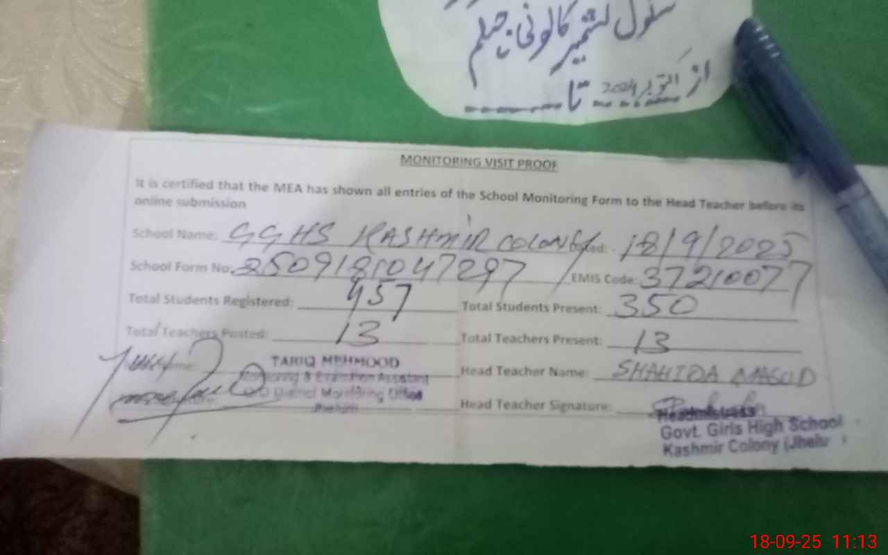 | EMIS Code: 37210077 | Name of School: GGHS KASHMIR COLONY | |||