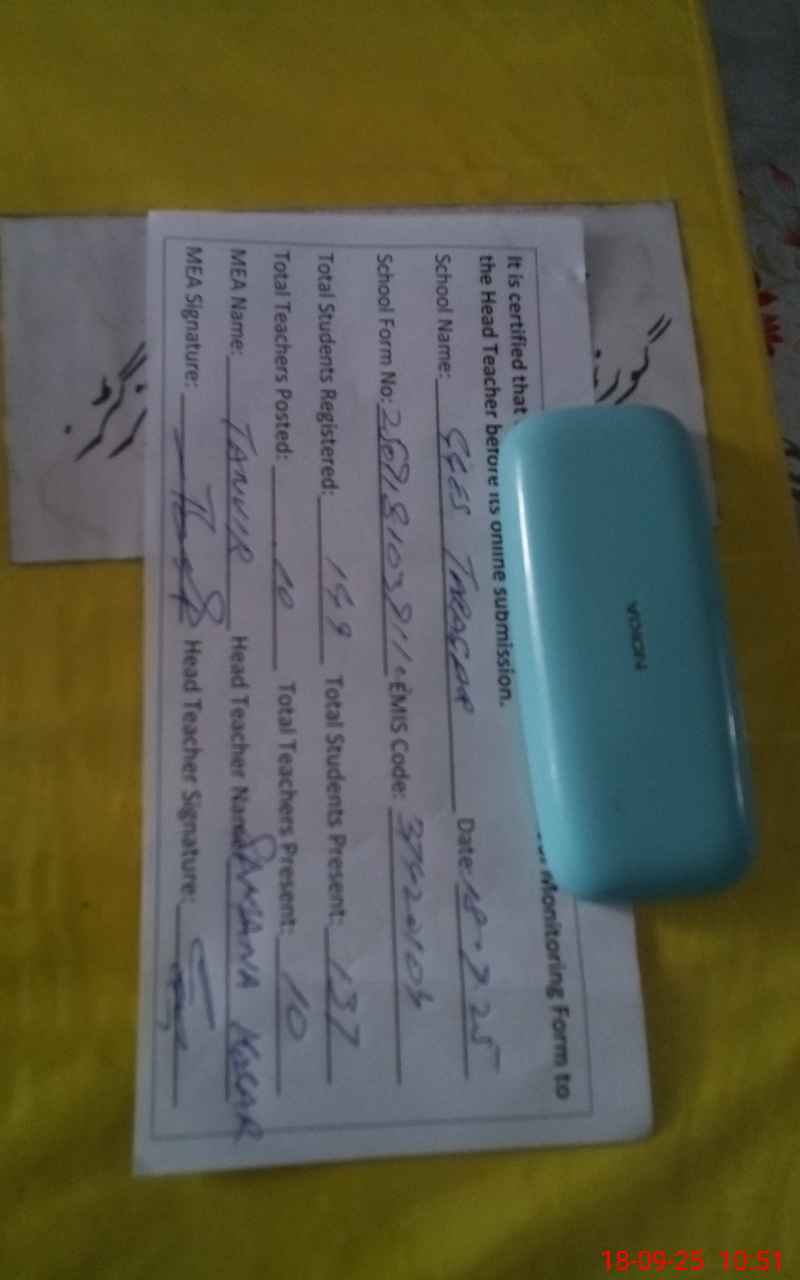 | Attendance Register | Head Teacher | MEA with School | Visit Proof |