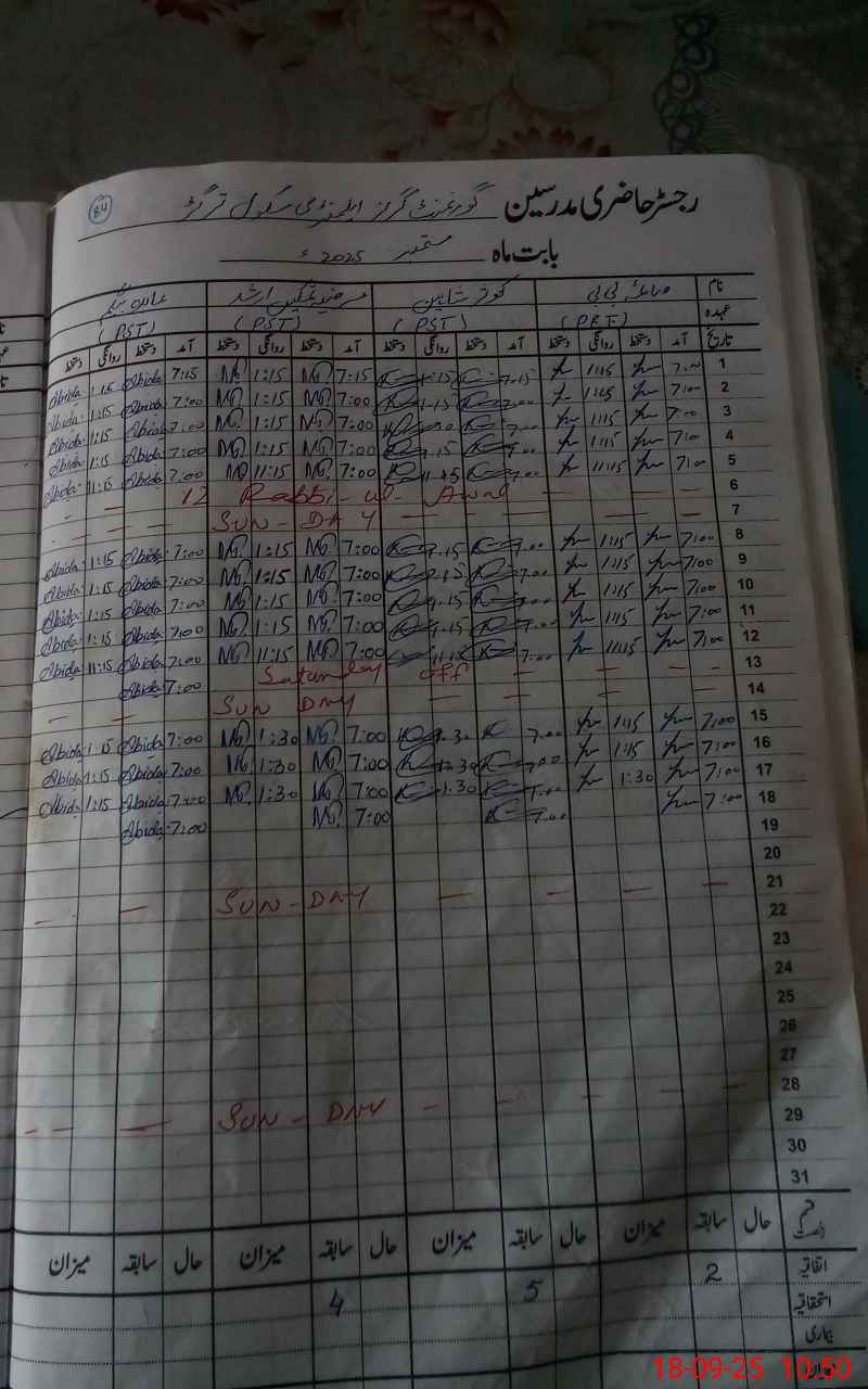 | CNIC | Full Name | Designation | R/C | Absence During Last Calender Month |