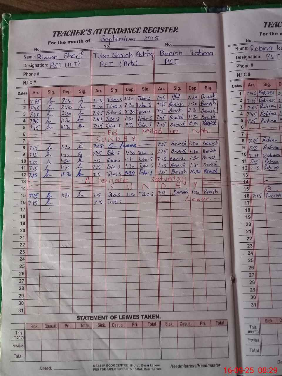 | Name: RI**** SH**** Designation: (School Headmaster's/Headmistress's) PST Phone/Cell Number: 03**** |