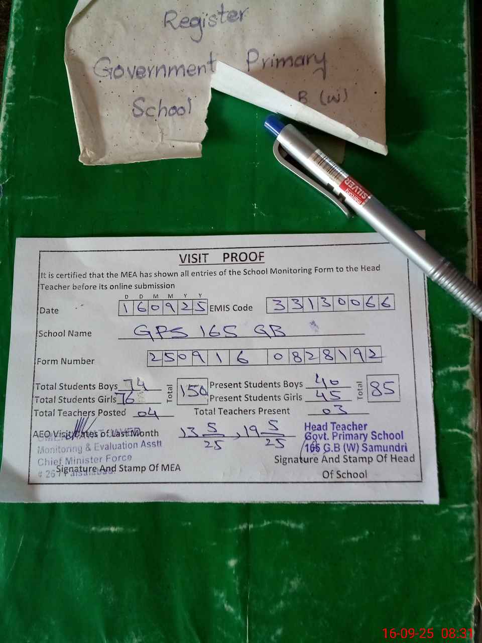 | EMIS Code: 33130066 | Name of School: GPS CHAK 165 GB WEST SAMUNDRI | |||