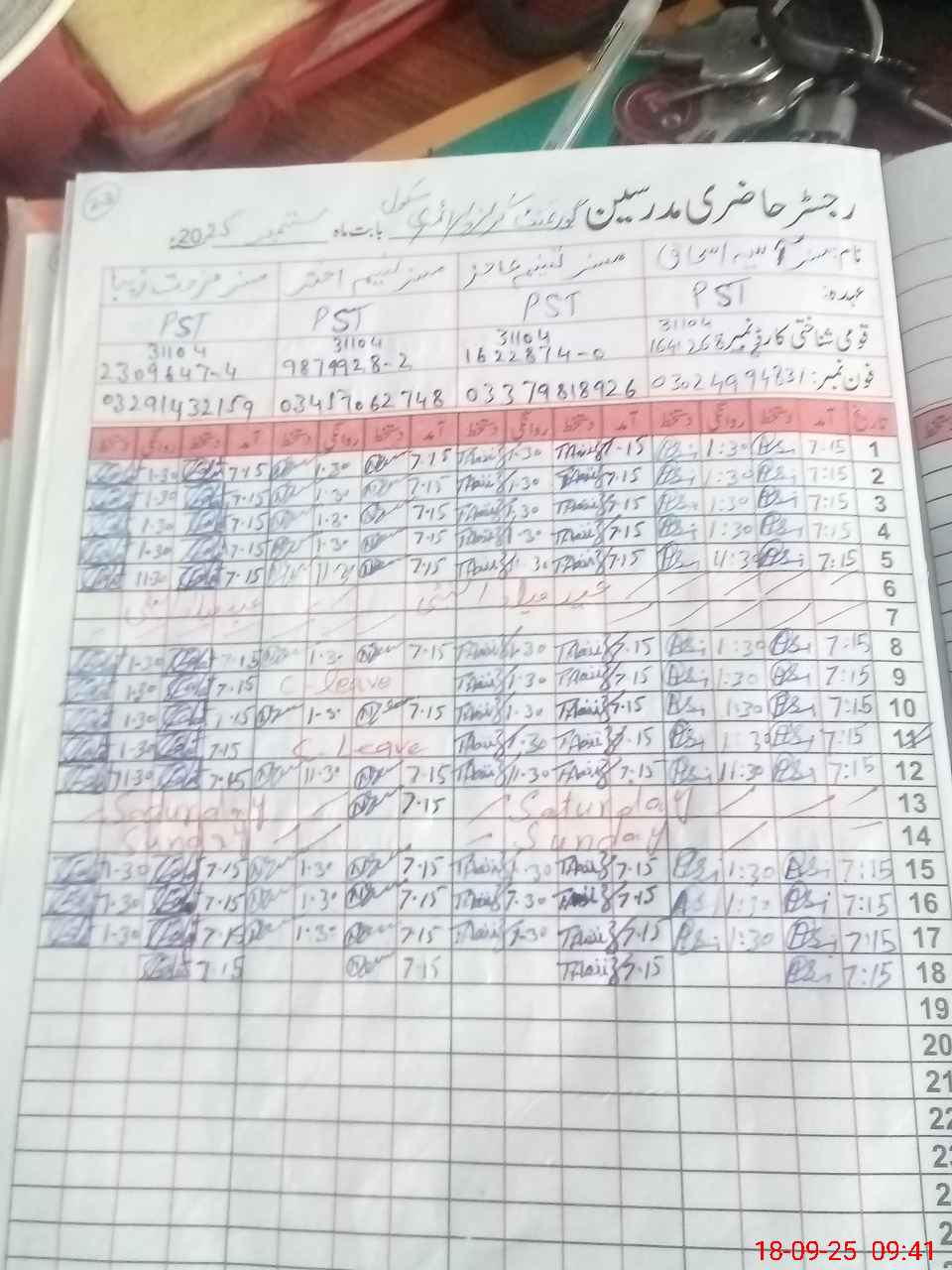 | CNIC | Full Name | Designation | R/C | Absence During Last Calender Month |