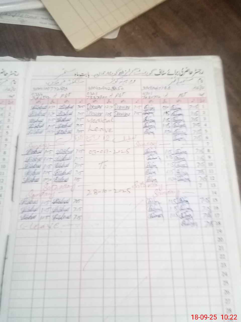 | Leave | Duty | Absent | Maternity | Medical | Ex- Pak |