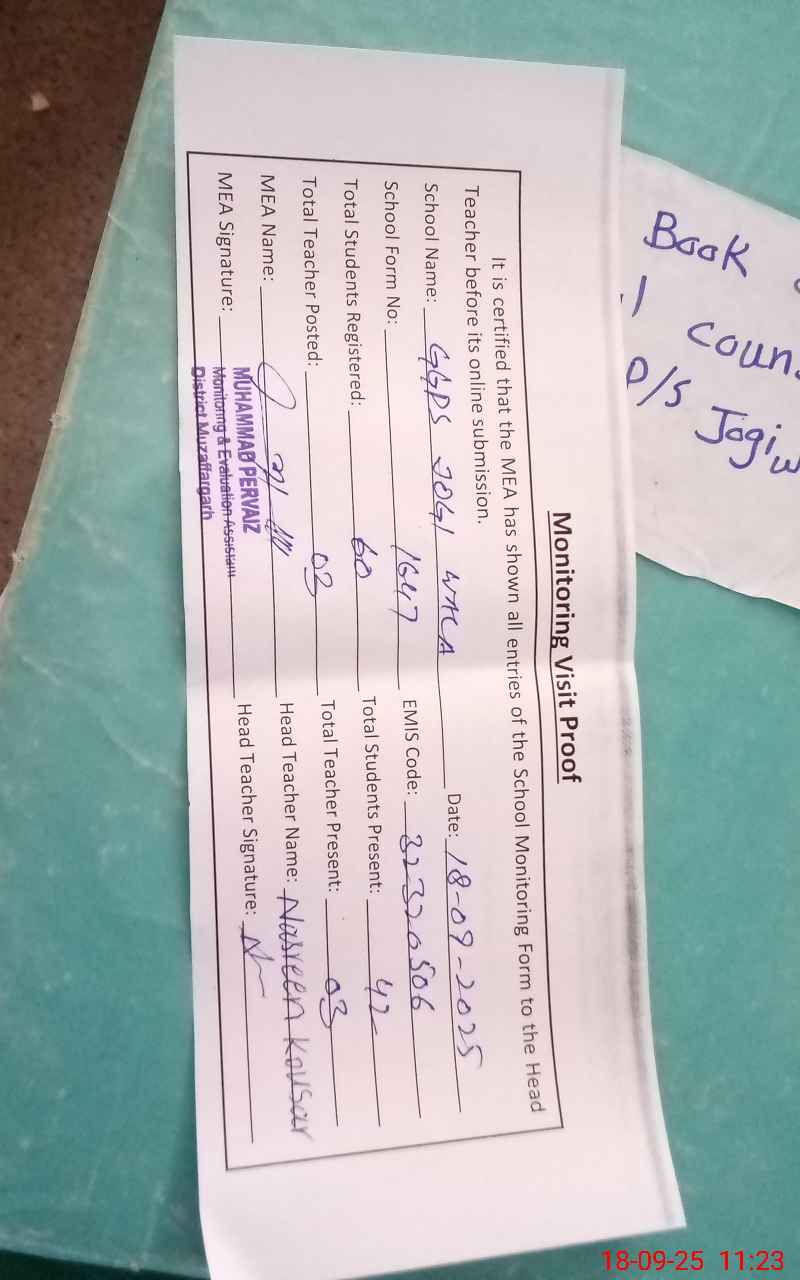 | EMIS Code: 32320506 | Name of School: GGPS JOGI WALA | |||