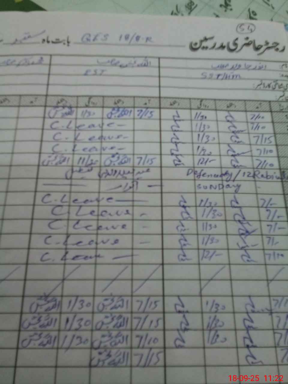 | CNIC | Full Name | Designation | R/C | Absence During Last Calender Month |