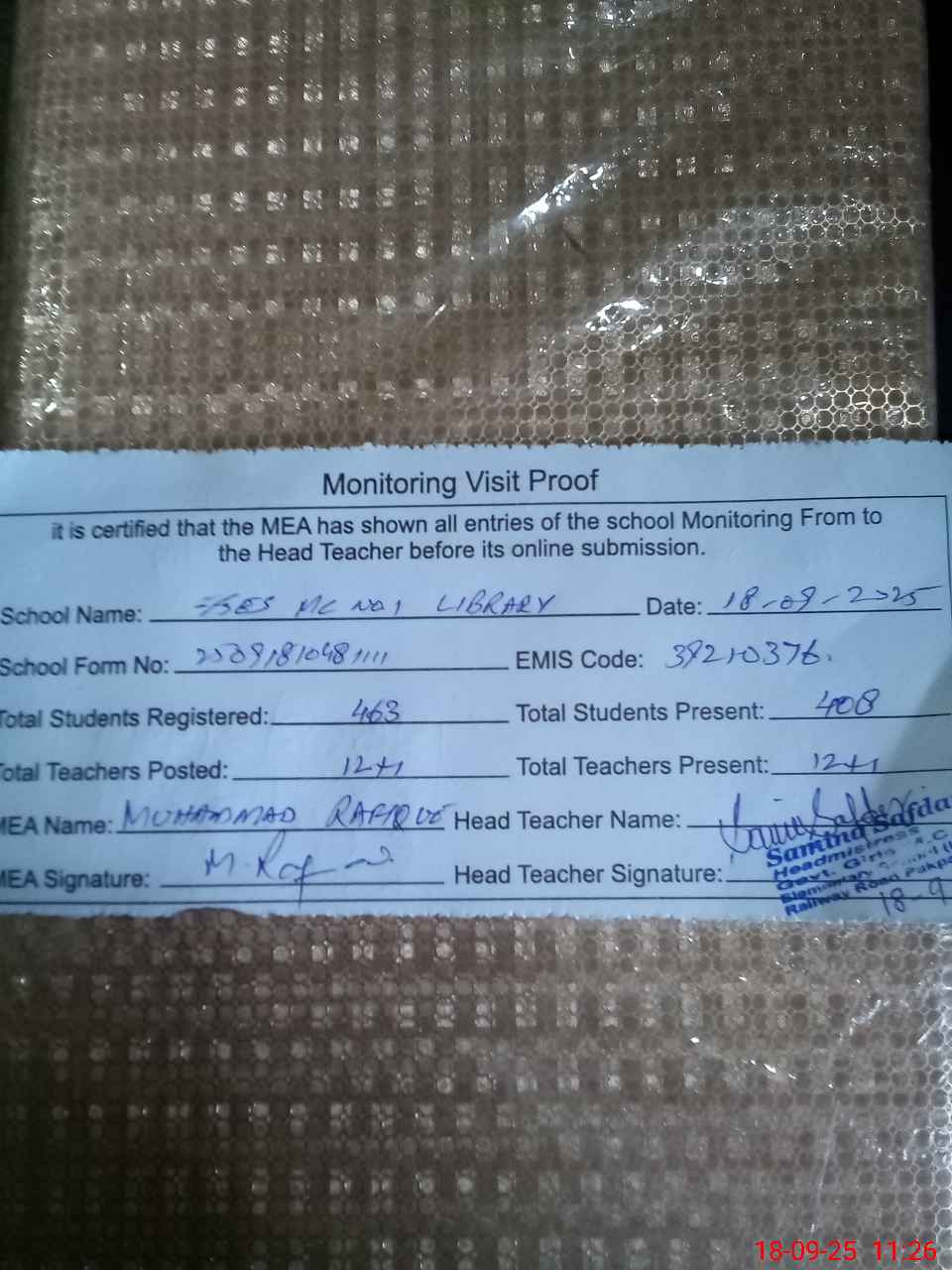 | EMIS Code: 39210376 | Name of School: GGES MC NO. 1 LIBRARY RAILWAY ROAD | |||
