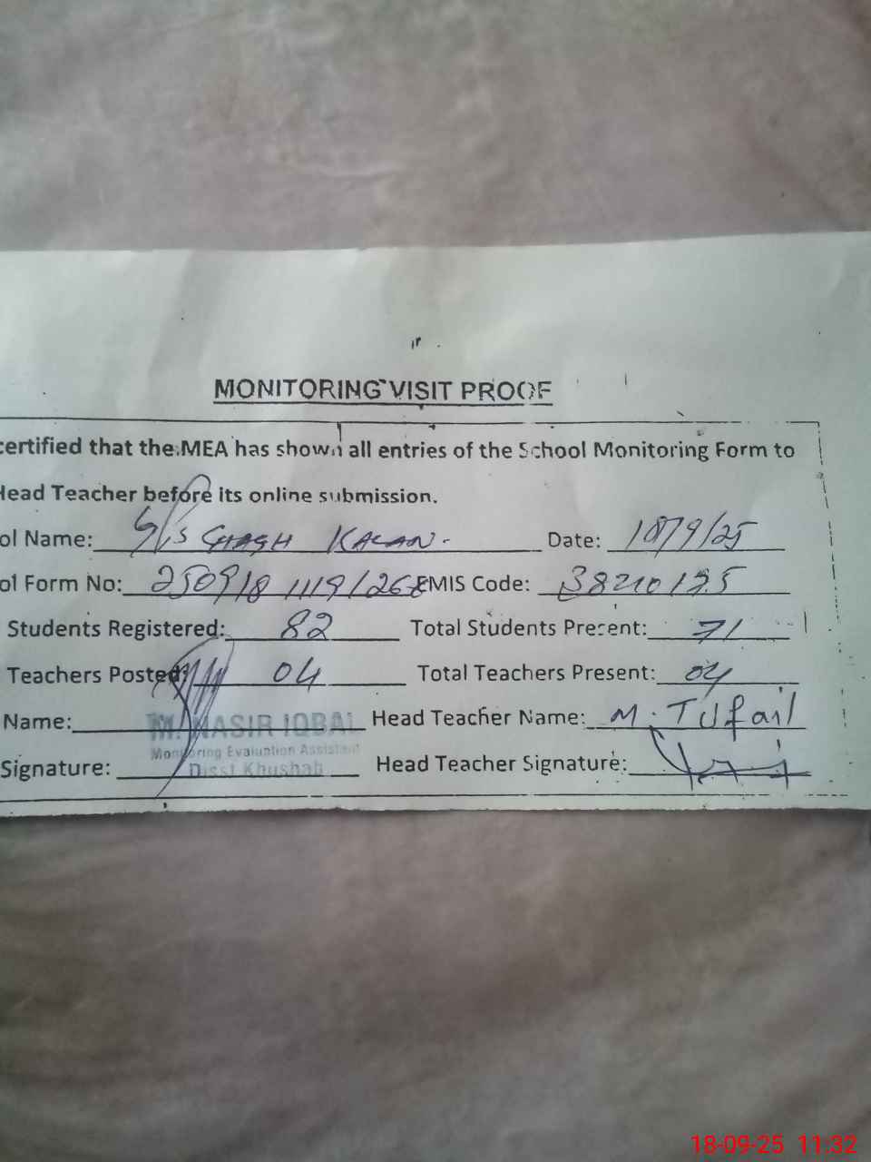 | EMIS Code: 38210175 | Name of School: GPS GHAGH KALAN | |||