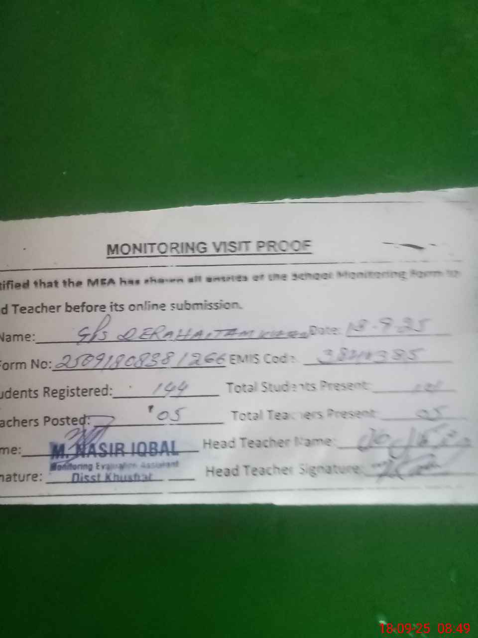 | EMIS Code: 38210385 | Name of School: GPS DERA HAITAM KHAN | |||
